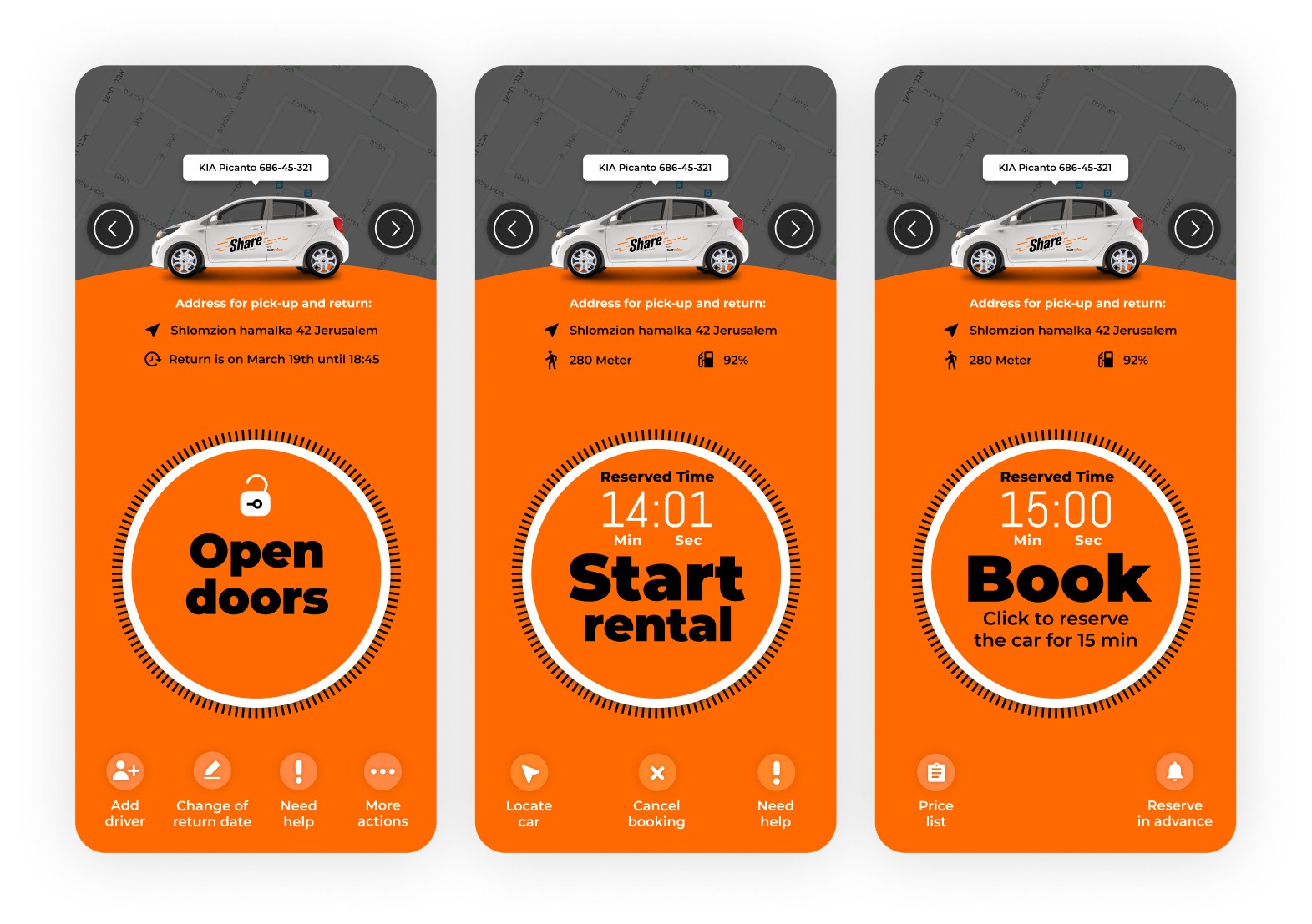 Designed a system and visual language that maximizes critical user actions around a single central button, controlling door access and managing rental time efficiently.